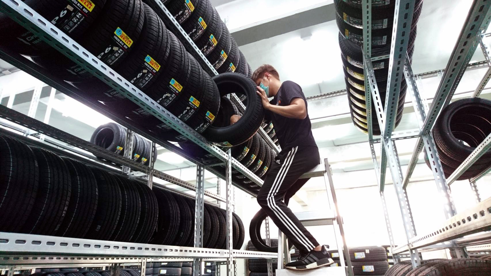 倉庫輪胎存放以儲貨架直立並列為主,以最佳條件儲放輪胎、提高人員存取效率,同時維持廠房簡潔美觀,宛如置身輪胎銷售商店。